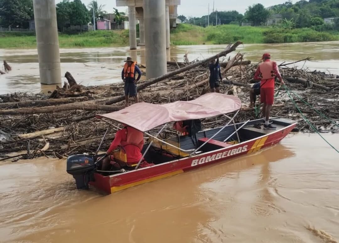 No último sábado (28), uma operação conjunta entre o Corpo de Bombeiros, por meio do 6º Batalhão de Educação, Proteção e Combate a Incêndios Florestais (BEPCIF), e o Departamento de Estradas de Rodagem do Acre (DERACRE), resultou na retirada de balseiros presos à estrutura da ponte Padre Paolino Baldassari, em Sena Madureira.