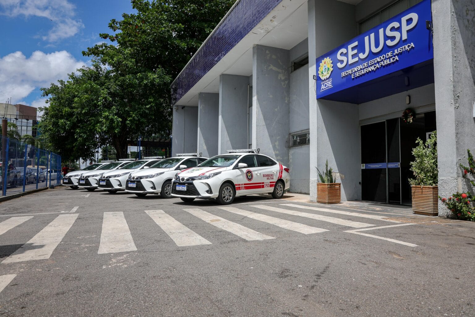 Em mais uma ação de fortalecimento da segurança pública do Acre, na manhã desta quinta-feira, 26, o governo do Estado realizou a entrega de nove veículos e equipamentos para a Secretaria de Justiça e Segurança Pública (Sejusp), Polícia Militar (PMAC) e Corpo de Bombeiros Militar (CBMAC). Além dos veículos, foi feita a entrega de drones e equipamentos de informática.