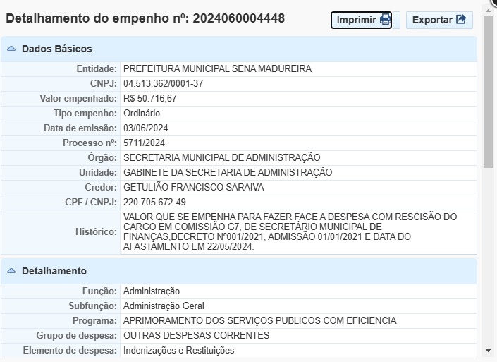 O secretário de Finanças de Sena Madureira se tornou o centro de uma polêmica após uma matéria publicada pelo site 3 de Julho Notícias, que o acusava de autorizar o pagamento de sua própria rescisão no valor de mais de R$ 50 mil nos últimos dias de gestão. Contudo, o secretário, Getulião Saraiva, emitiu uma nota de esclarecimento, refutando as informações publicadas e trazendo detalhes sobre o ocorrido.