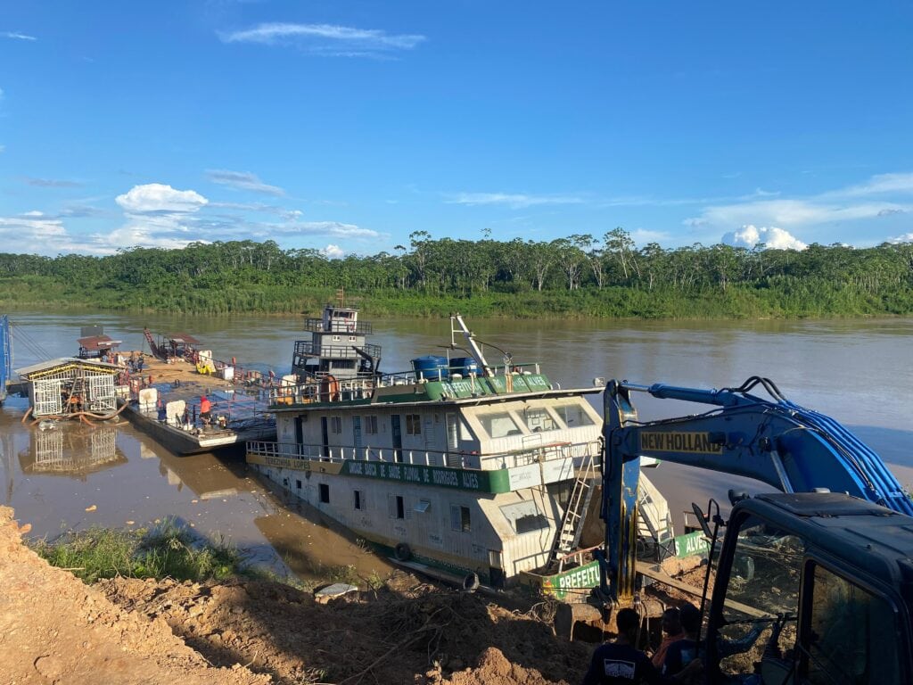 Na última sexta-feira, 13, o governo do Acre iniciou uma operação para resgatar uma unidade básica de saúde (UBS) fluvial que havia submergido na comunidade Agrovila do Muju, no Rio Juruá. A ação, solicitada pela Prefeitura de Rodrigues Alves, contou com o apoio do Departamento de Estradas de Rodagem, Infraestrutura Hidroviária e Aeroportuária (Deracre) e do Corpo de Bombeiros do Estado, que mobilizou balsas, máquinas e equipes especializadas para a remoção da embarcação.