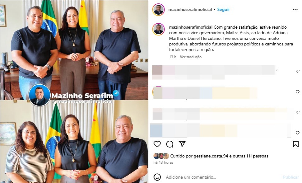 Meses após o incidente, o agora ex prefeito adotou uma postura mais conciliadora. Esse mês de janeiro de 2025, ele compartilhou em suas redes sociais um encontro com a vice-governadora, expressando satisfação pela reunião ao lado de Mailza Assis e ex secretários.
