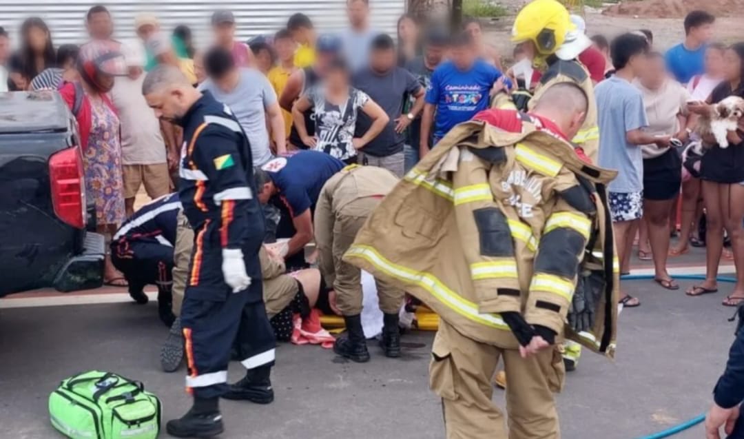 O comandante do Corpo de Bombeiros, Capitão Josadac Iberbom, informou que, após avaliação da equipe do SAMU, a caminhonete foi movida para liberar a vítima com segurança, permitindo a retirada e estabilização de Kimberly antes de ser encaminhada ao hospital.