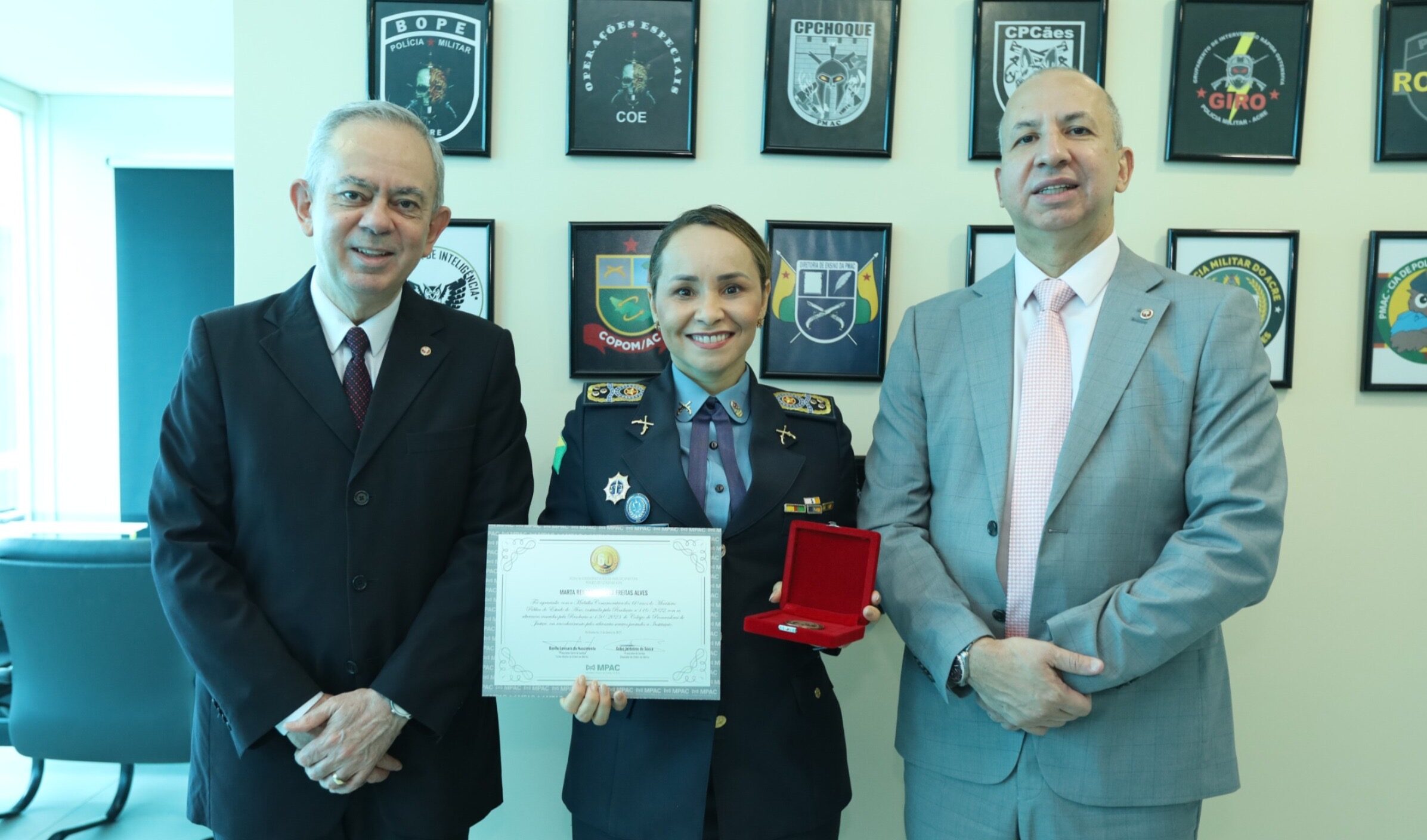 Em resposta, a coronel Marta Renata agradeceu a homenagem e reforçou o compromisso da PMAC com as ações conjuntas com o MPAC. “Quando as instituições atuam juntas com o mesmo propósito, a confiança da sociedade se fortalece, e isso é essencial para a segurança pública”, declarou.