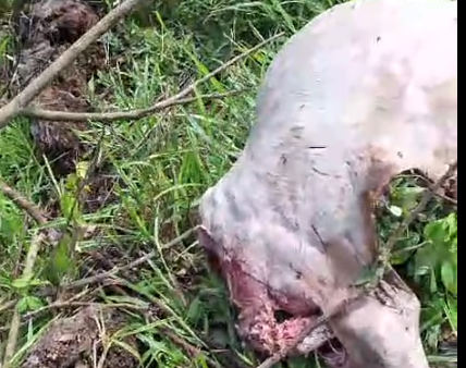 Na manhã desta segunda-feira (27), um morador da comunidade Baturité, localizada às margens do rio Iaco, zona rural de Sena Madureira, no Acre, encontrou um bezerro de sua propriedade morto e parcialmente devorado. O produtor acredita que o animal foi atacado por uma onça-pintada, que teria arrastado a presa para próximo da mata antes de devorá-la parcialmente.