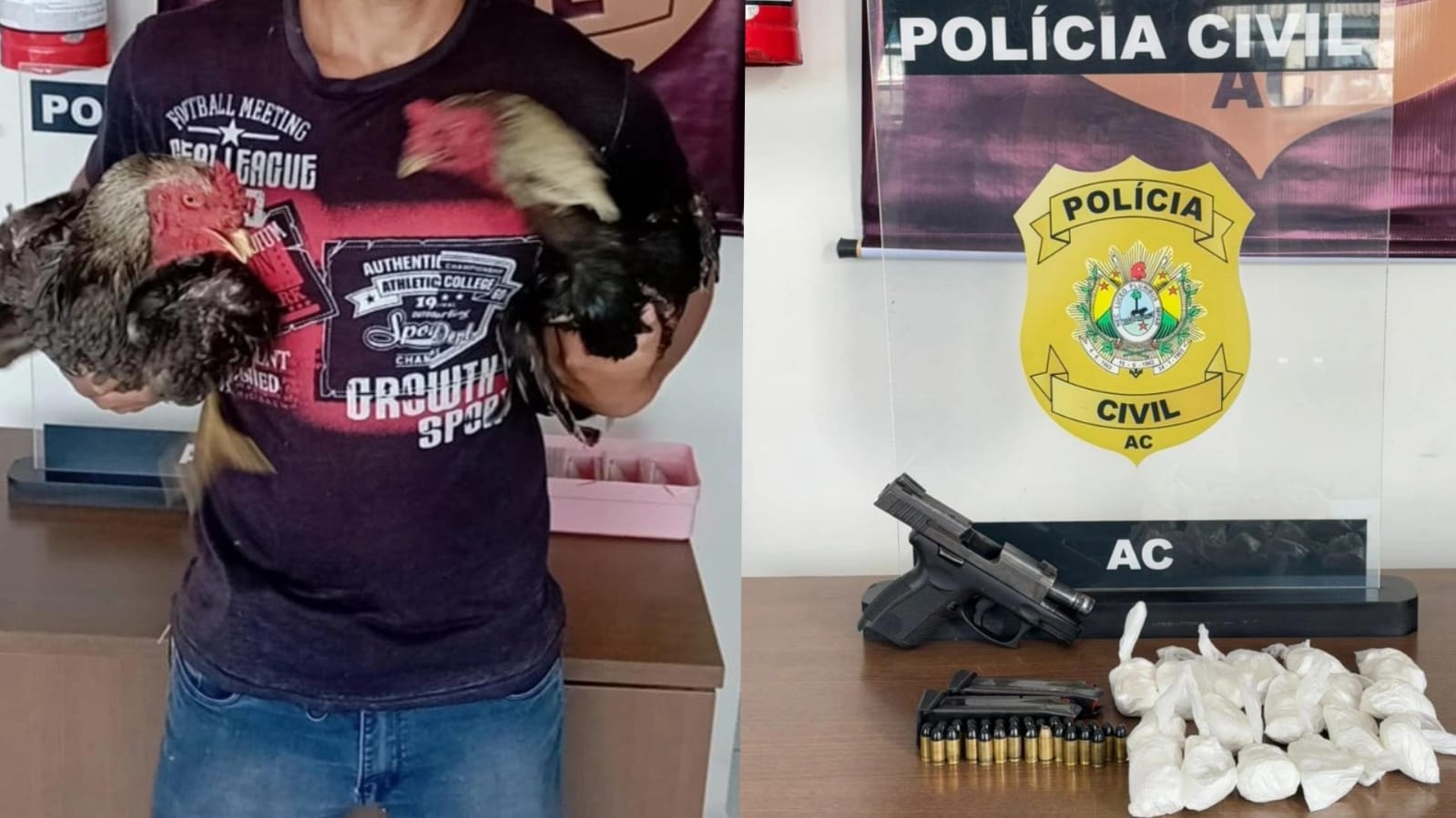 Além disso, dois galos de briga foram encontrados em posse do mesmo traficante responsável pelas drogas e armas. As investigações apontaram que os animais seriam utilizados em rinhas de galo na região, configurando crime ambiental.