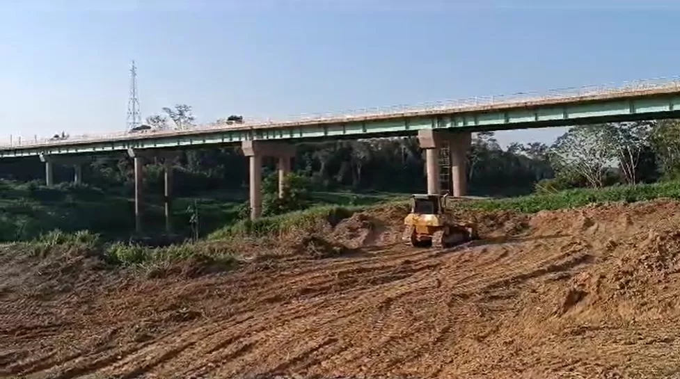 Enquanto isso, equipes estão trabalhando no local para preparar a área, realizando terraplanagem para a construção de um desvio e rampas de embarque e desembarque para a balsa. Uma segunda empresa também realiza uma avaliação do solo para que as obras de reforma da ponte possam ser iniciadas.