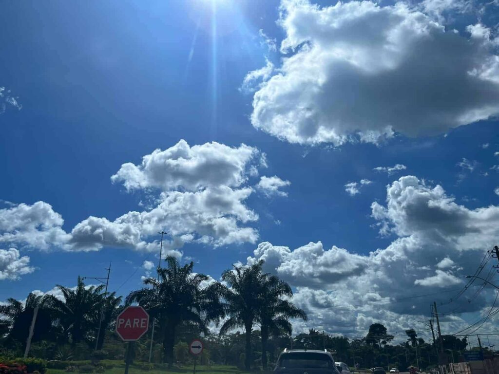 No Acre, o dia terá variações entre períodos de sol, aumento de nuvens e chuvas que, em alguns locais, podem ser fortes. A umidade relativa do ar será alta, oscilando entre 55% e 65% durante a tarde, e atingindo valores entre 90% e 100% ao amanhecer.