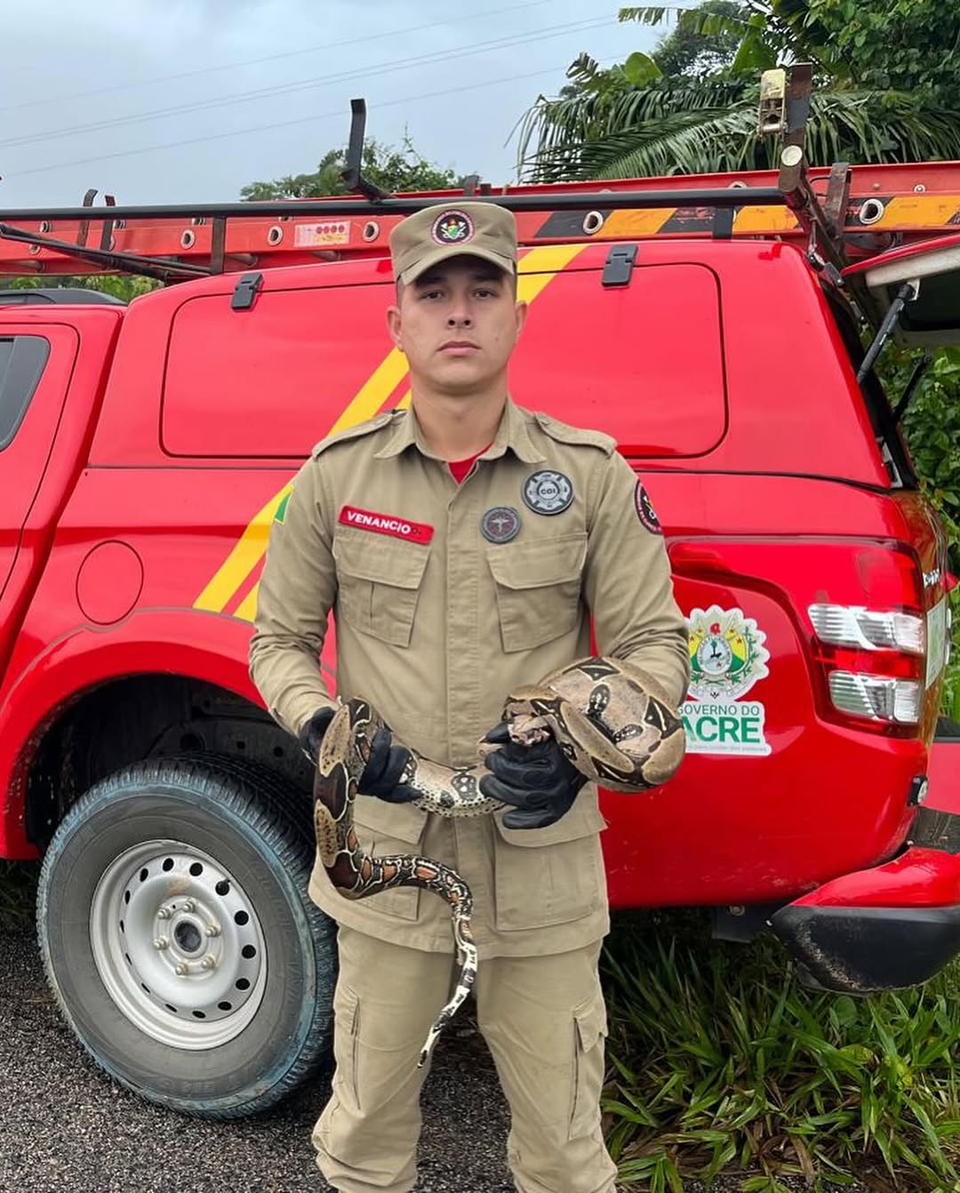 Na manhã desta segunda-feira (10), a equipe de salvamento do 6º Batalhão de Educação, Proteção e Combate a Incêndios Florestais (6° BEPCIF) foi acionada para resgatar uma jiboia de aproximadamente 1,5 metro dentro de uma residência no bairro São Felipe, em Sena Madureira.