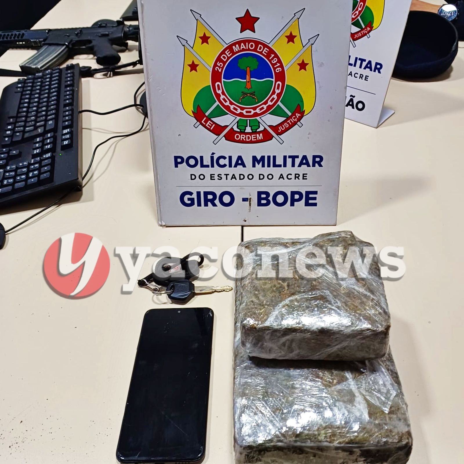 Após um rápido acompanhamento, a dupla perdeu o controle da motocicleta na rua São Francisco e bateu em um muro. O garupa desceu e correu adentrando em uma área de mata, tomando rumo ignorado, não sendo possível alcançá-lo, contudo, o piloto da moto ao cair ficou em baixo da motocicleta. Ele foi identificado como, Maykon Gomes Gadelha, junto com o piloto da moto foi encontrado uma caixa de papelão, ao abrir, os militares encontraram um tijolo e meia barra de produto entorpecente análogo à Skank. Ao perguntar sobre o destino do entorpece, o acusado disse que iria entregar a encomenda no bairro Cômara, porém não teria achado o endereço e retornou ao bairro de sua origem.