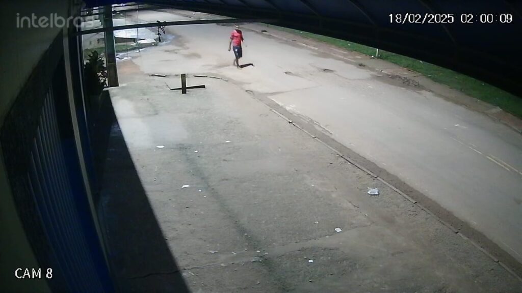 Câmeras de segurança registraram o momento em que o suspeito se aproximou do estabelecimento. Alertado pelo barulho e pelos latidos de sua cachorra, o proprietário saiu para verificar e se deparou com o homem deixando o local com uma faca em mãos. Ao perceber a presença do dono, o suspeito fugiu, levando apenas a faca e deixando danos na tranca da porta.
