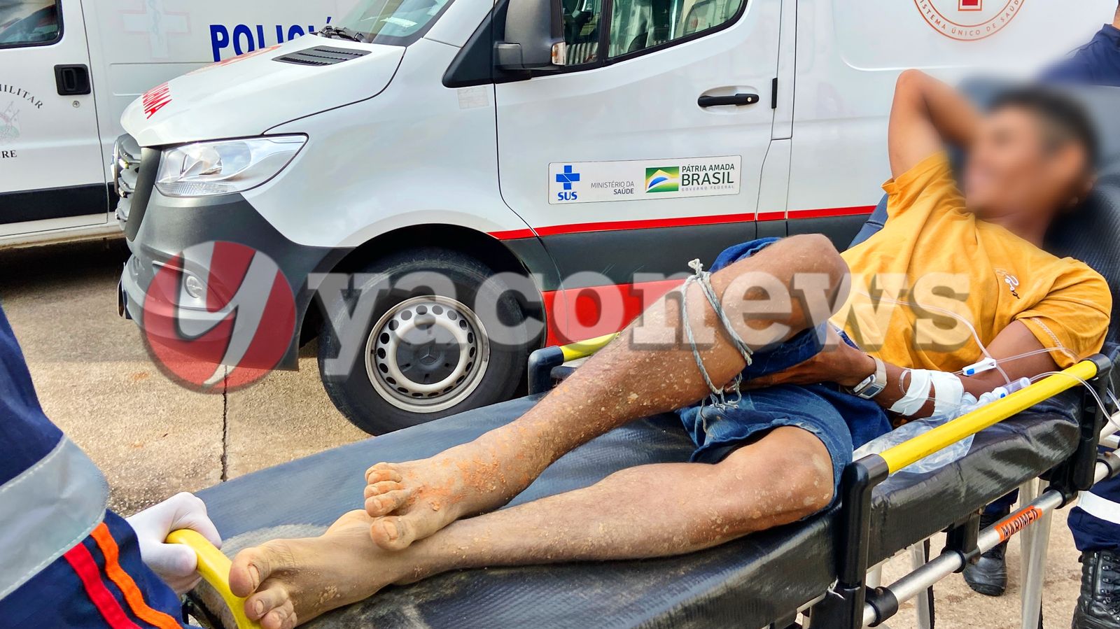O Samu foi chamado. Uma ambulância de suporte básico foi enviada para atender a ocorrência. Os socorristas interceptaram o veículo na entrada da estrada Transacreana. Após receber os primeiros atendimentos, o paciente foi encaminhado para o Pronto Socorro de Rio Branco em estado de saúde estável.