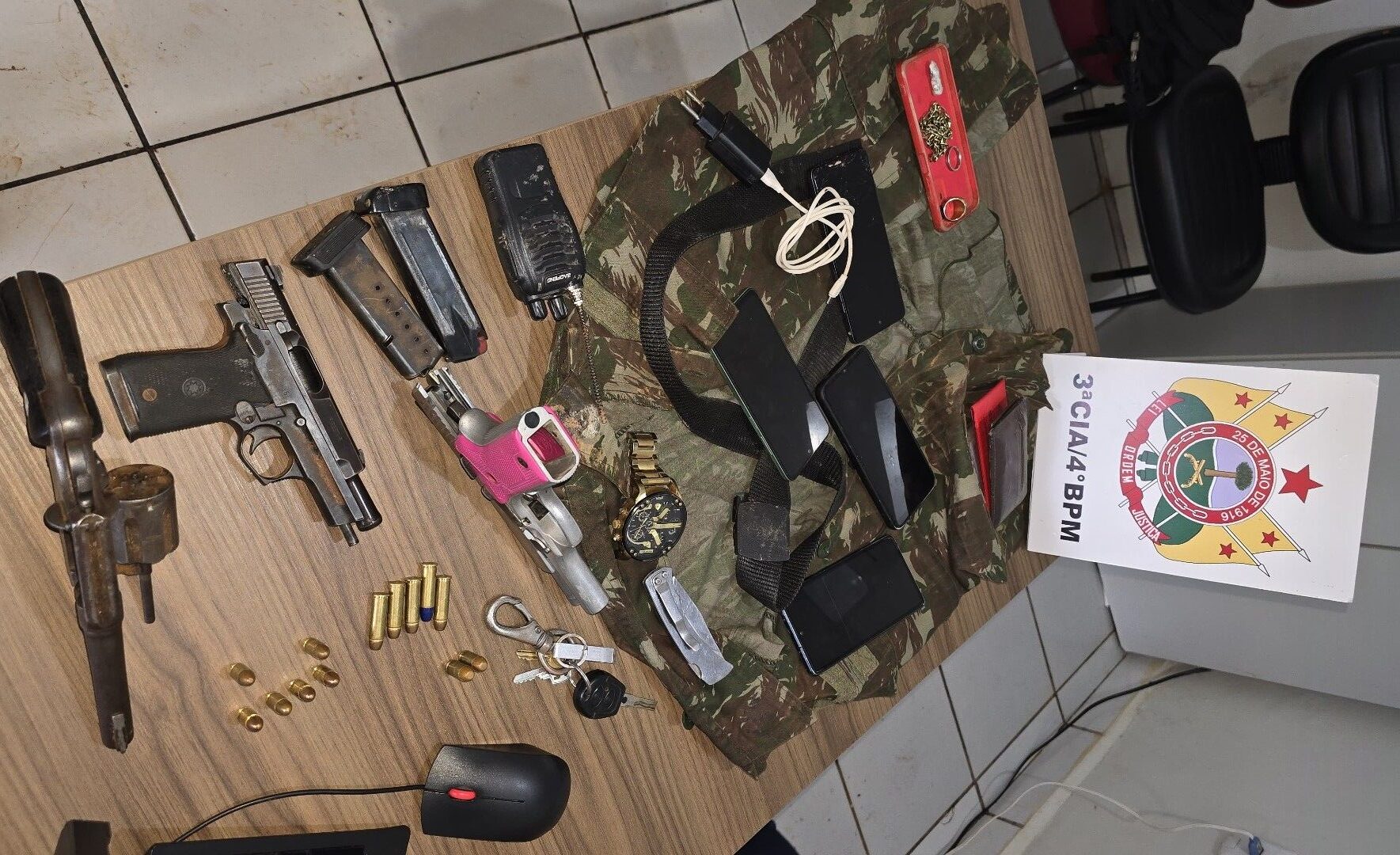 Os militares rapidamente realizaram buscas e conseguiram capturar os suspeitos, um dos quais estava armado. No interior do veículo, foram encontradas duas pistolas e um revólver, além de munições.