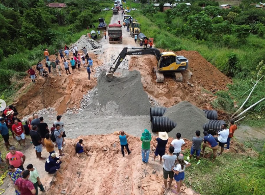 O trecho da rodovia rompeu no último domingo (23) após o dispositivo de drenagem do Igarapé Folgoso não suportar o grande volume de água causado pelas fortes chuvas. Desde então, o Departamento Nacional de Infraestrutura de Transportes (Dnit) atuou de forma paliativa para recuperar a estrada, operando o tráfego no sistema de ‘Pare e Siga’, controlado por órgãos federais.