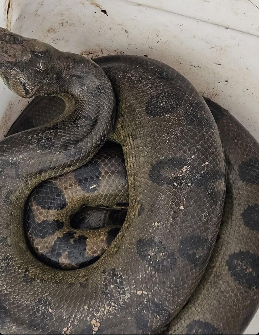 Bombeiros resgatam sucuri-verde em quintal de residência em Sena Madureira