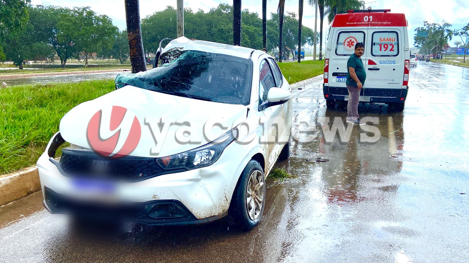 Um carro modelo Fiat Argo de cor branco, conduzido pelo comerciante Lucas Emanuel Rocha, de 25 anos, perdeu o controle após aquaplanar e capotar por duas vezes.