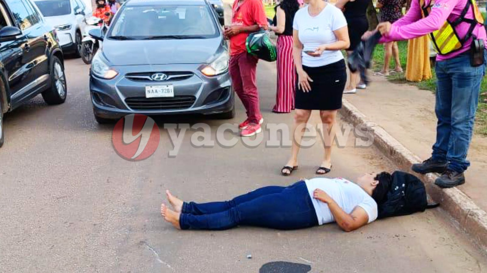 Uma jovem sofreu um acidente na tarde desta terça-feira (25), na rua Dom Júlio Martioli, em frente à igreja católica, no município de Epitaciolândia, interior do Acre.