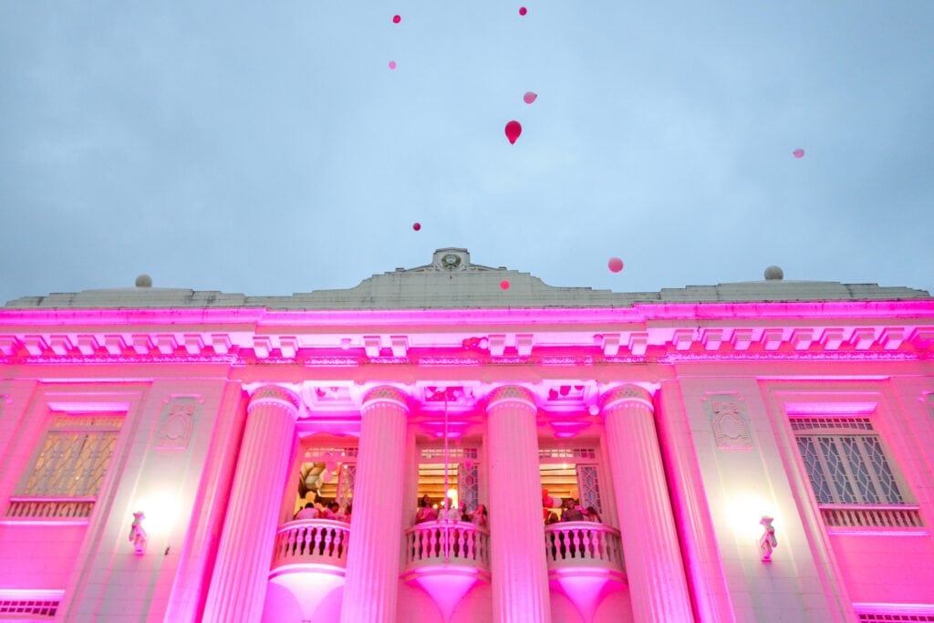 O Palácio Rio Branco foi iluminado de rosa na noite desta sexta-feira (7) em homenagem ao Dia Internacional da Mulher, celebrado neste sábado (8). A cerimônia ocorreu no Salão Nobre da sede do Executivo acreano e contou com a presença de autoridades, servidores e cidadãos, mesmo sob forte chuva. A iluminação será mantida durante todo o mês de março.