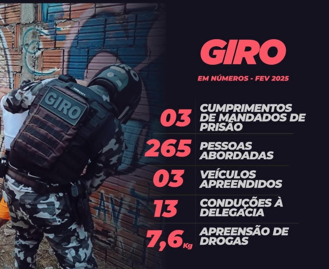 O 8º Batalhão da Polícia Militar de Sena Madureira, sob o comando do Tenente-Coronel Fábio Diniz, divulgou nesta terça-feira (3) o balanço das ações do Grupo de Intervenção Rápida e Ostensiva (GIRO) realizadas ao longo do mês de fevereiro de 2025. As operações resultaram em diversas prisões, apreensões e reforço no policiamento do município.