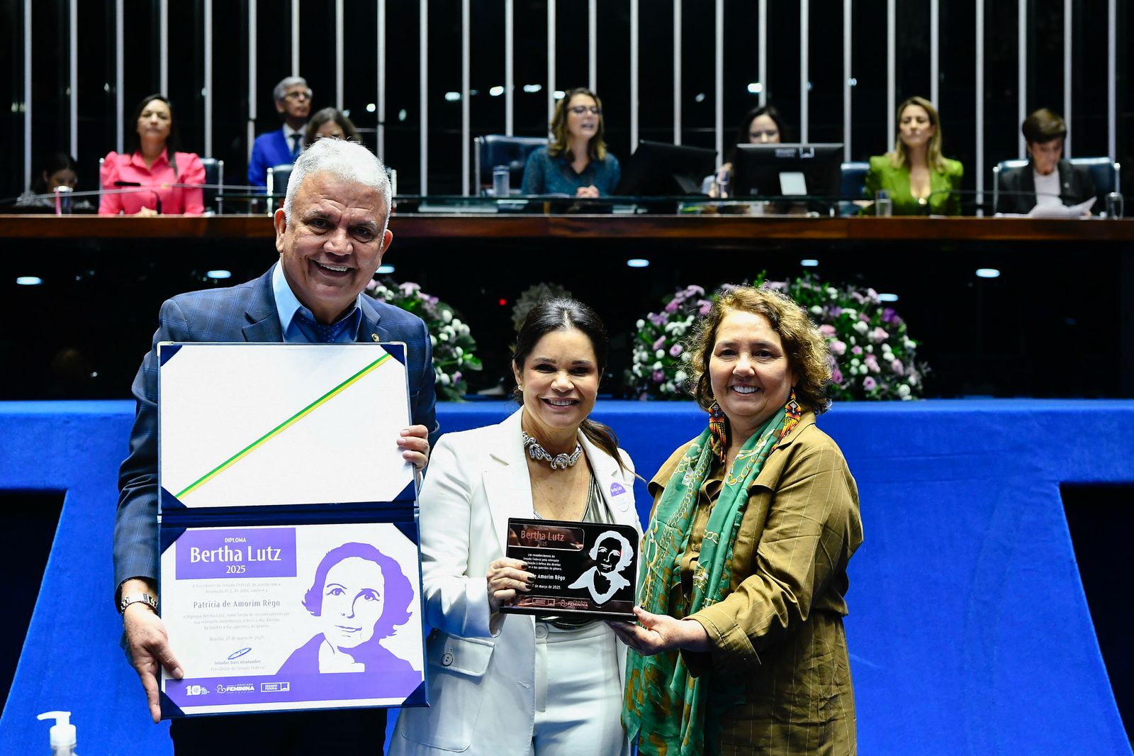 A procuradora de Justiça do Ministério Público do Estado do Acre (MPAC), Patrícia de Amorim Rêgo, recebeu, nesta quinta-feira, 27, em Brasília, o Diploma Bertha Lutz, uma das mais importantes honrarias concedidas pelo Senado Federal. A cerimônia ocorreu no plenário e homenageou 19 personalidades.