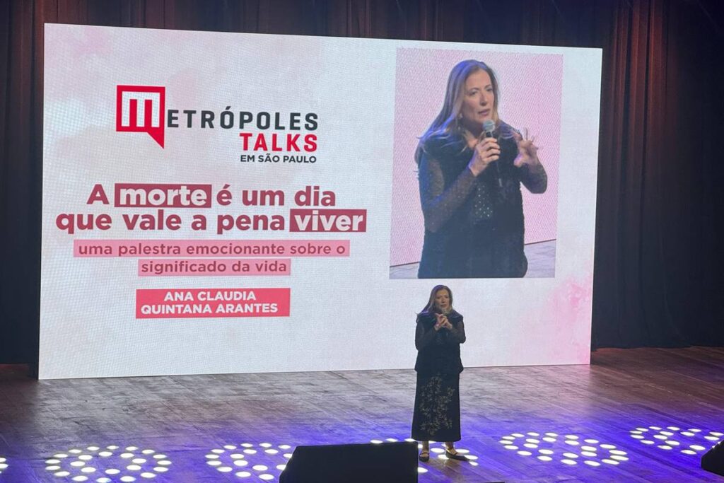 “O medo da morte significa que você não tem coragem de viver”. Essa foi uma entre tantas falas fortes e profundas da médica, escritora e professora Ana Claudia Quintana Arantes, palestrante da segunda edição do Metrópoles Talks em São Paulo, realizado na noite desta terça-feira (24/6), no Teatro Bravos, em Pinheiros, zona oeste paulistana.