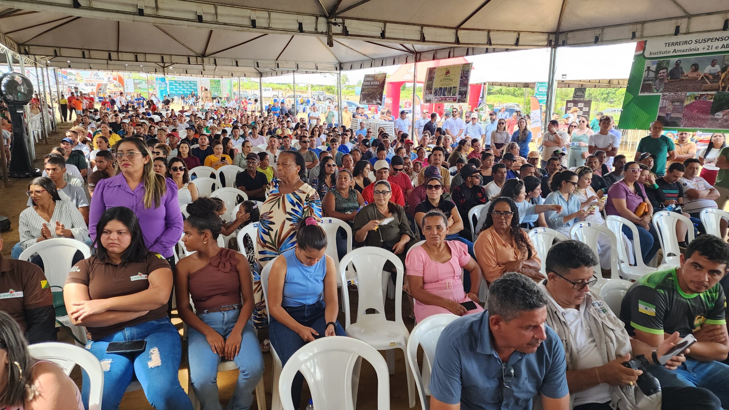 “Queria destacar três coisas muitas rápidas. Para que esse complexo chegasse neste momento, primeiro teve que ter produção. E produção da agricultura familiar! Foi uma viagem feita aqui pelo Jonas, pelo Isaac, é preciso fazer justiça a quem contribuiu, e pelo Sibá Machado, que nem aqui está, mas foi ele quem incentivou essa primeira viagem à Rondônia. Teve coragem de produtor para começar a produzir. Segundo, apareceu um velhinho, que já tinha mexido com cooperativas de outras áreas, que é o nosso Jonas Lima, e disse: ‘não adianta só a gente produzir, temos que ter uma organização’. O Jonas botou a cooperativa de pé, começou a conversar com todo mundo, essa cooperativa começou a chamar a atenção, começou a ganhar respeito e virou a Coopercafé, falada dentro e fora do Acre. Tem gente que vem aqui só saber como é essa história da Coopercafé”, disse Edvaldo Magalhães.