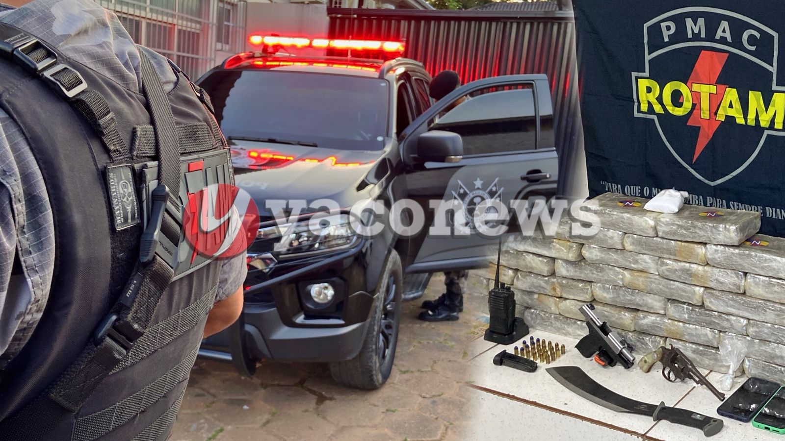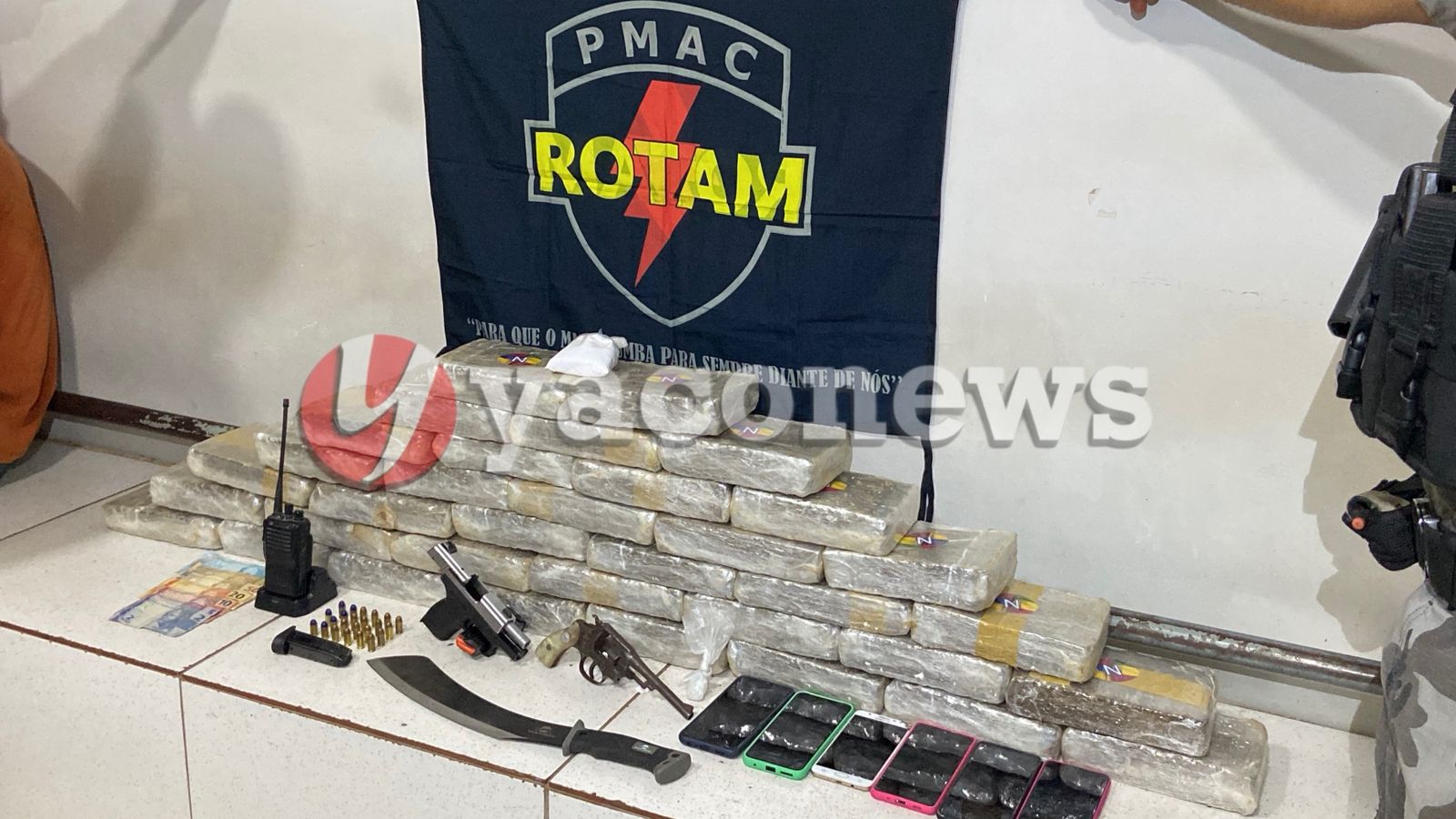 No interior da casa também foram encontrados um saco de cocaína e vários aparelhos celulares, além de um rádio comunicador e uma quantia em dinheiro.