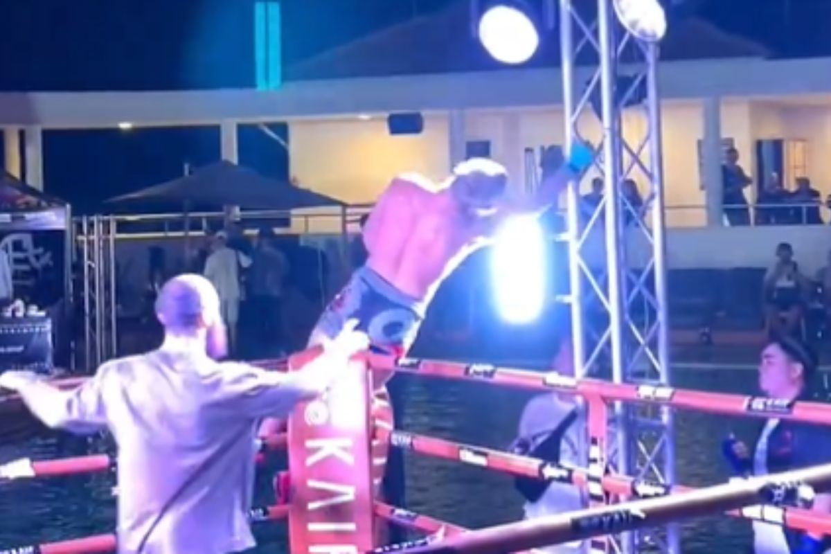 O atleta ficou desacordado por alguns segundos, assustou as pessoas que estavam ao redor, mas, ao recuperar a consciência, saiu nadando do local, já que o ringue era envolto por uma piscina.