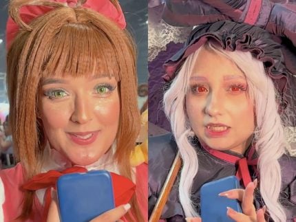 Em entrevista ao portal, Camila, de 36 anos, contou que confeccionou uma fantasia especialmente para o evento. Vestida de Shalltear Bloodfallen, do anime “Overlord”, ela apostou em um vestido longo, cheio de camadas, babados e detalhes. O look foi complementado com acessórios como um guarda-chuva de época, laço na cabeça e uma maquiagem caprichada, com direito a lente de contato vermelha e peruca.