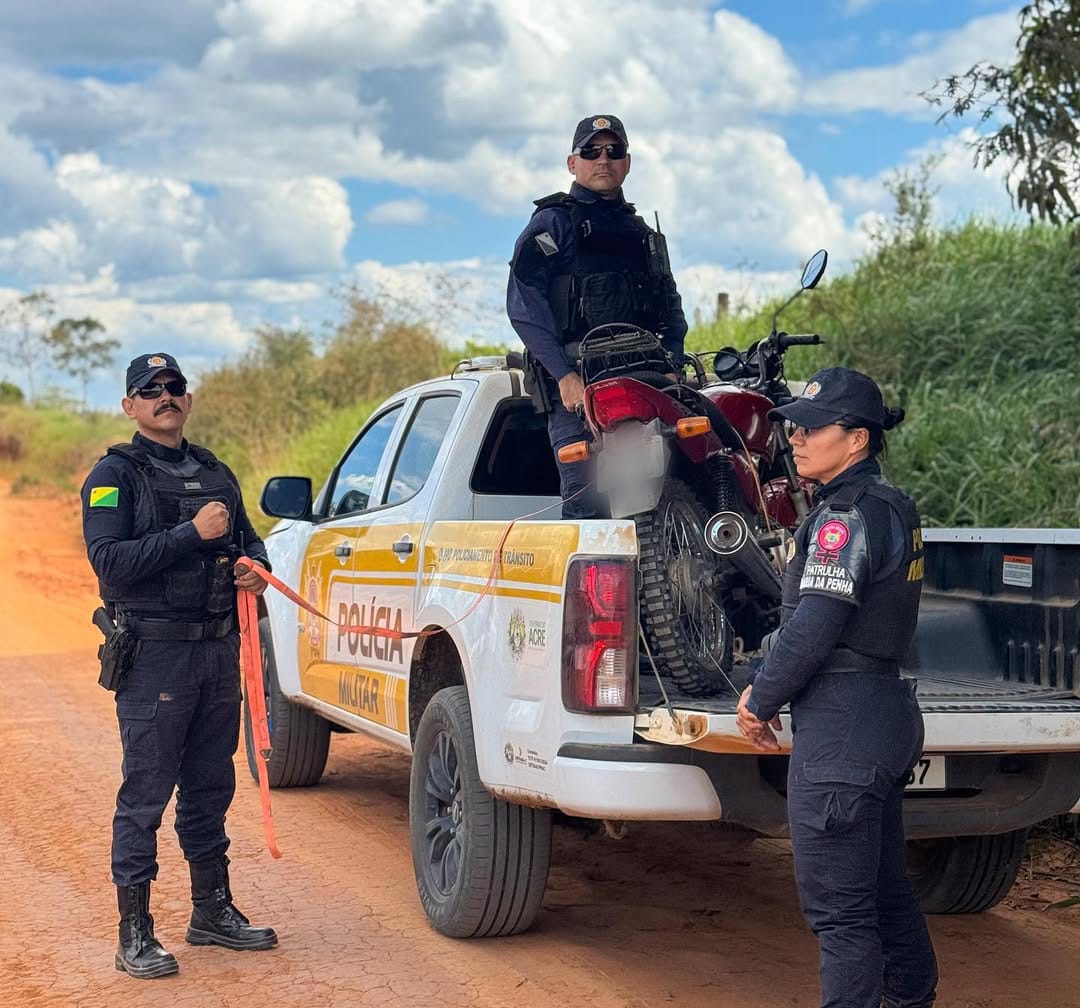 Na tarde de terça-feira, 7 de julho, policiais do 8º Batalhão da Polícia Militar recuperaram uma motocicleta furtada na zona rural de Sena Madureira. O veículo foi localizado no Ramal Xiburena após a guarnição ser acionada para verificar uma moto aparentemente abandonada na região.