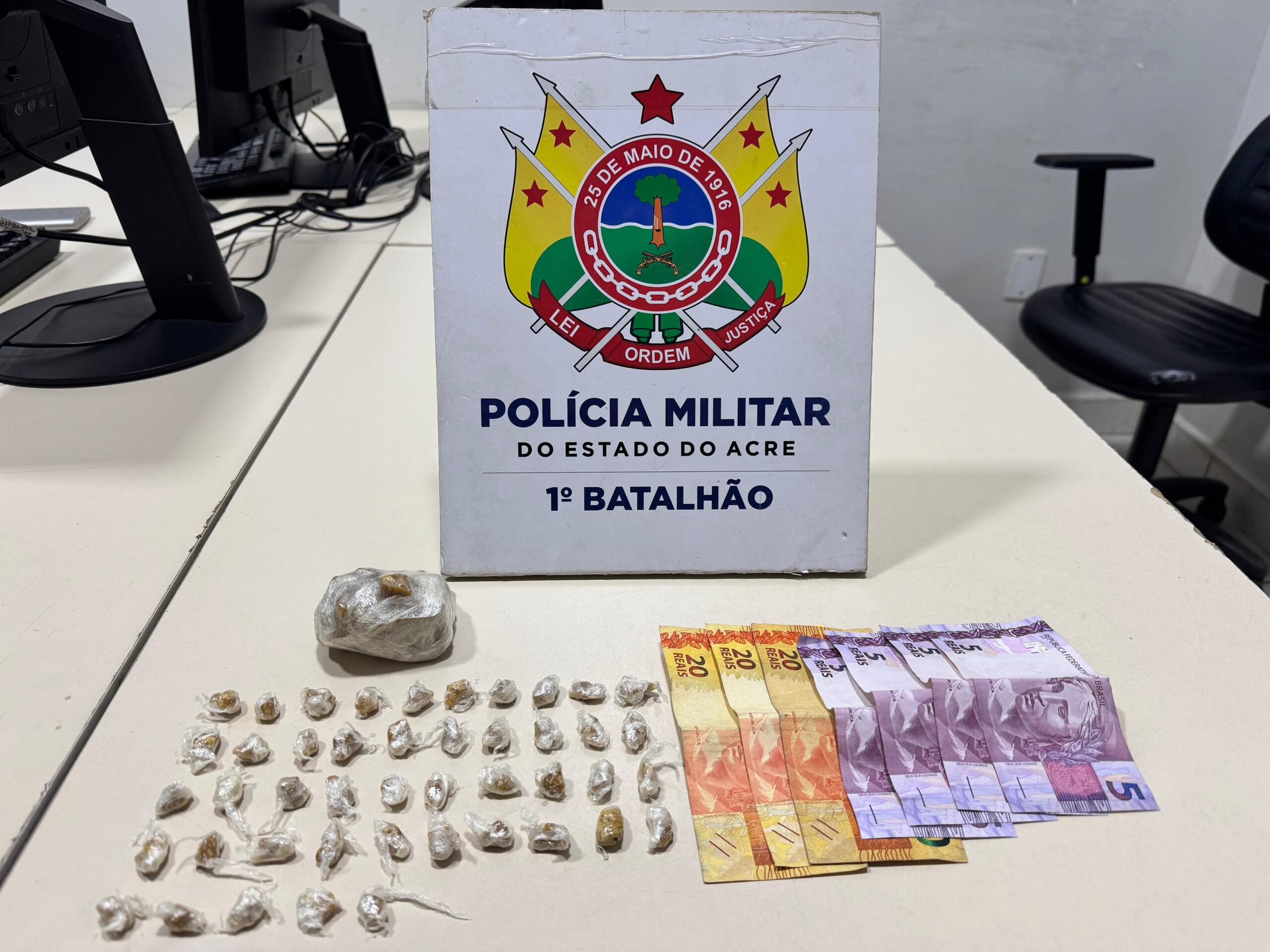 Na tarde desta terça-feira (15), policiais militares do 1º Batalhão prenderam um homem suspeito de tráfico de entorpecentes em uma praça localizada na Rua Padre Paulino, no bairro Rui Lino, em Rio Branco.