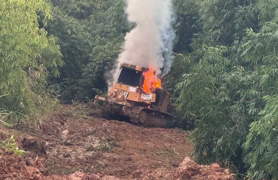 Um trator pertencente à Prefeitura Municipal de Manoel Urbano pegou fogo no final da tarde desta segunda-feira (7), enquanto realizava serviços de reabertura de ramal na zona rural do município. O incidente ocorreu em um trecho conhecido como “Furna da Onça”, nas proximidades da comunidade Itaúba.