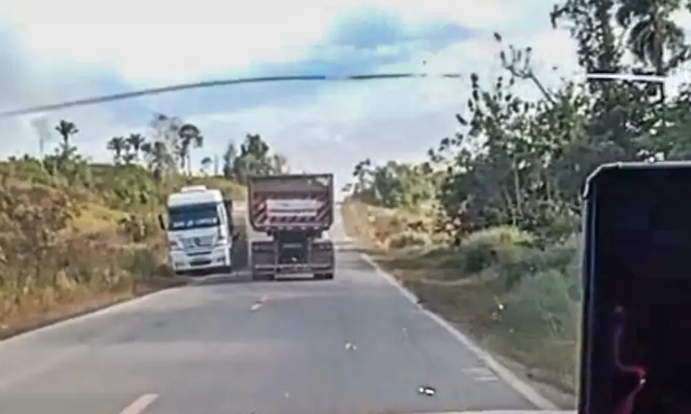 Instantes depois, uma carreta que trafegava no sentido oposto precisou sair parcialmente da pista para evitar uma colisão frontal, o que poderia ter resultado em uma tragédia.