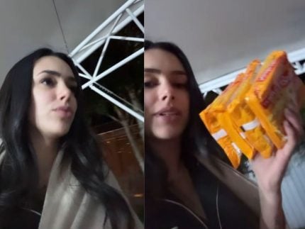 A madrugada desta terça-feira (12/8) rendeu um registro inusitado nos stories de Bruna Biancardi. A influenciadora, de 31 anos, contou que saiu de seu quarto para preparar um macarrão instantâneo, mas acabou descobrindo que o produto não estava na cozinha mais próxima.