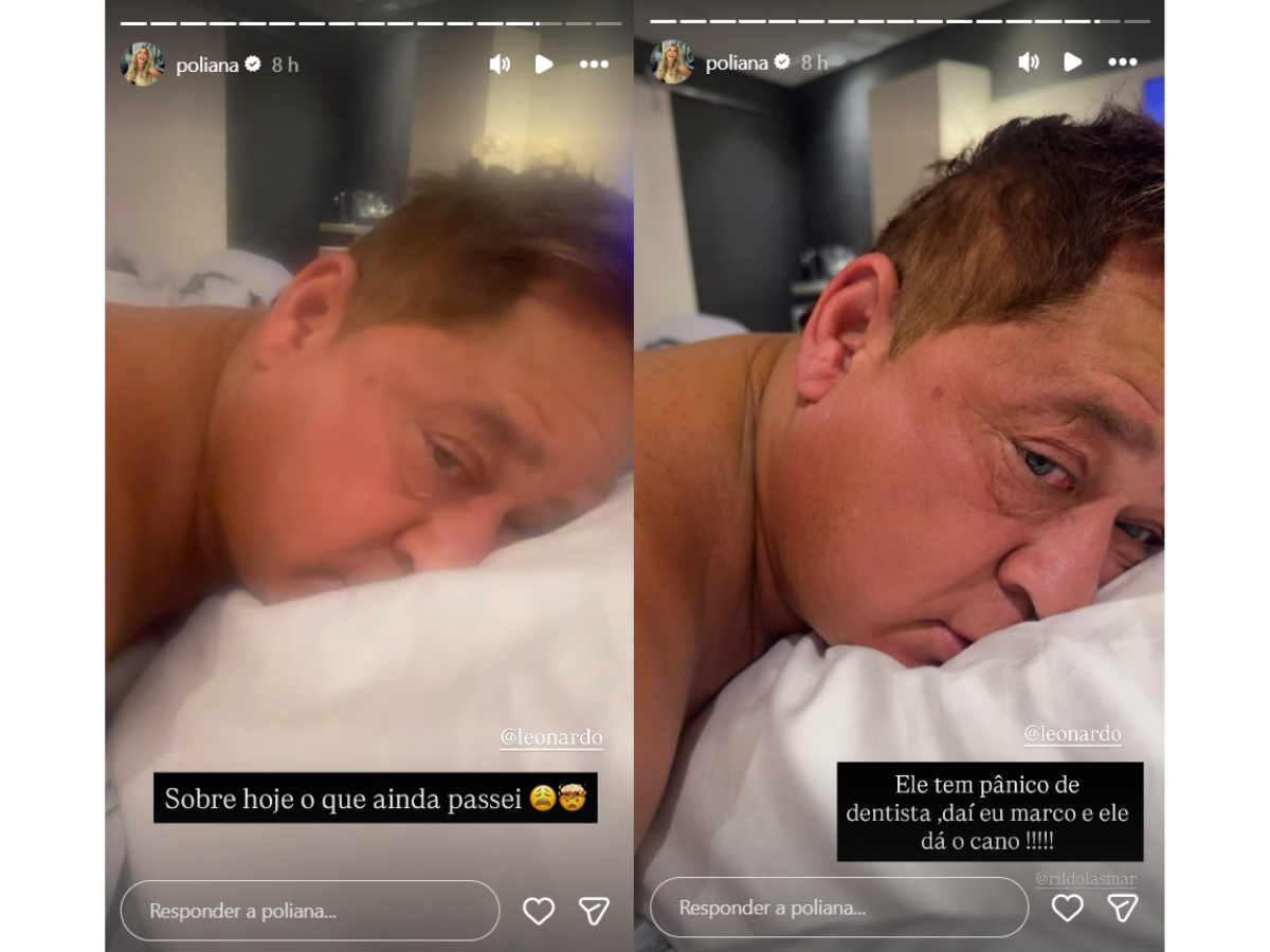 Poliana Rocha divertiu seus seguidores ao contar que Leonardo tem medo de dentista. Nesta quarta-feira (27/8), o casal compartilhou uma história: a de que o horário no consultório estava marcado… Só que ele foi beber com os amigos e deu “cano” na esposa.