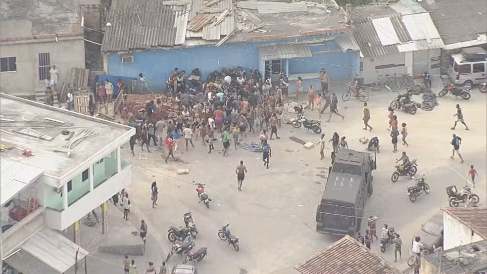 Uma carga de carne roubada no Complexo da Pedreira, em Costa Barros, na Zona Norte do Rio de Janeiro, foi saqueada por uma multidão na tarde desta quarta-feira (6). O incidente, flagrado por um helicóptero da TV Globo, mostra a ação da população, que ignorou a presença de um carro blindado da Polícia Militar (PM).