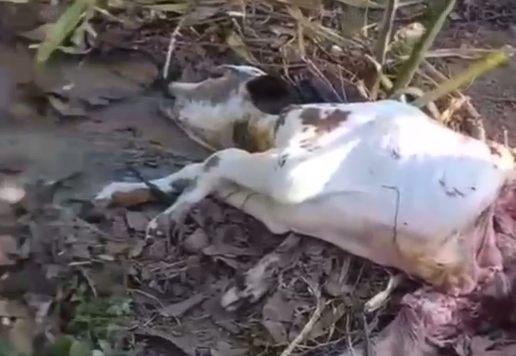 Nas imagens, é possível observar o bezerro já sem vida, com parte do corpo consumida pela onça. O incidente gerou preocupação entre os moradores, que temem a aproximação de felinos e o risco de ataques a pessoas.