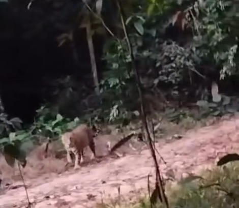 Um vídeo, que viralizou nas redes sociais, mostra uma onça-pintada caminhando tranquilamente pelo Ramal do Toco Preto, em Sena Madureira. O animal foi filmado por um morador local que, ao avistá-lo, se escondeu e conseguiu fazer o registro.