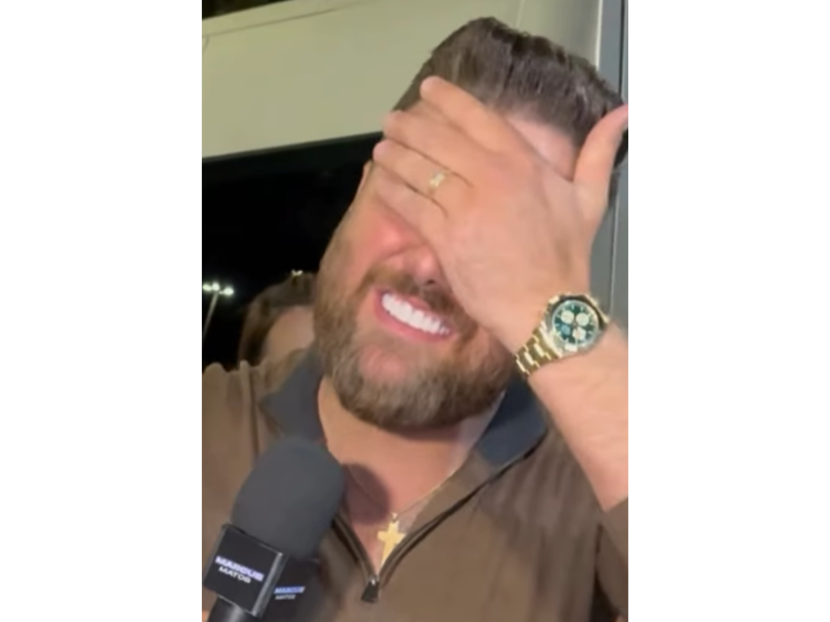 O artista respondeu: “Mas eu não sei qual é o principal pra vocês”. “É o mundo”, respondeu o repórter. O famoso perguntou qual time o jornalista torce e ele respondeu três, mas sem falar os nomes dos clubes. “Eu sei, você é um frustradinho também”, respondeu a celebridade, na brincadeira.