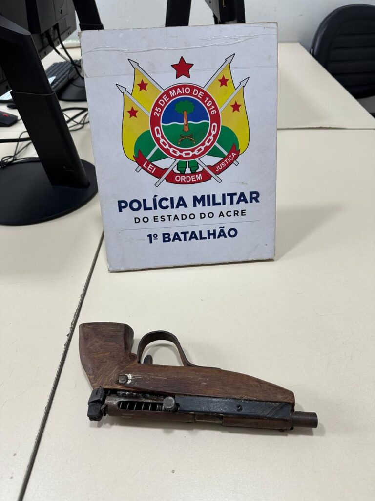 Na tarde de segunda-feira (25), a Polícia Militar do Acre (PMAC), por meio do 1º Batalhão, apreendeu uma arma de fogo artesanal no bairro Nova Esperança, em Rio Branco.