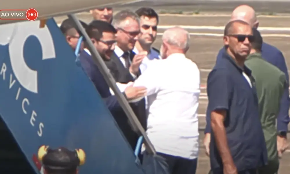 O presidente Luiz Inácio Lula da Silva desembarca na manhã desta sexta-feira (8) no Aeroporto Internacional de Rio Branco, capital do Acre, onde é recebido pelo governador Gladson Cameli (Progressistas), que o cumprimenta com um abraço e veste uma gravata branca para a ocasião. A chegada marca o início de compromissos oficiais que ainda serão cumpridos ao longo do dia, com foco em bioeconomia, infraestrutura e desenvolvimento regional.