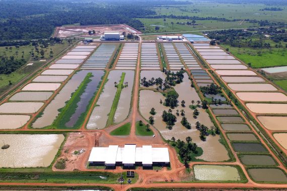 - infraestrutura adicional: vias de acesso interno asfaltadas, interligando os galpões e a ETA, e um complexo de tanques para piscicultura distribuídos em uma área de aproximadamente 45 hectares