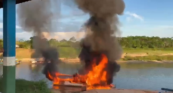 Um incêndio atingiu, na tarde desta quarta-feira (3), uma balsa carregada com diesel e gasolina no município de Porto Walter, interior do Acre. Apesar da gravidade da ocorrência, ninguém ficou ferido.