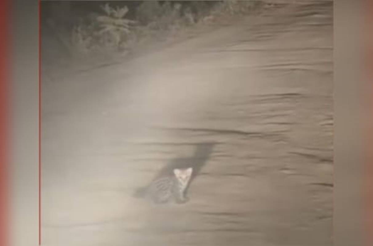 Um filhote de jaguatirica de aproximadamente um mês foi flagrado perdido à noite na estrada de Porto Jofre, em Poconé, a 104 km de Cuiabá. O momento foi gravado pela ecologista Abigail Martins, de 35 anos, diretora do Projeto Jaguar ID.
