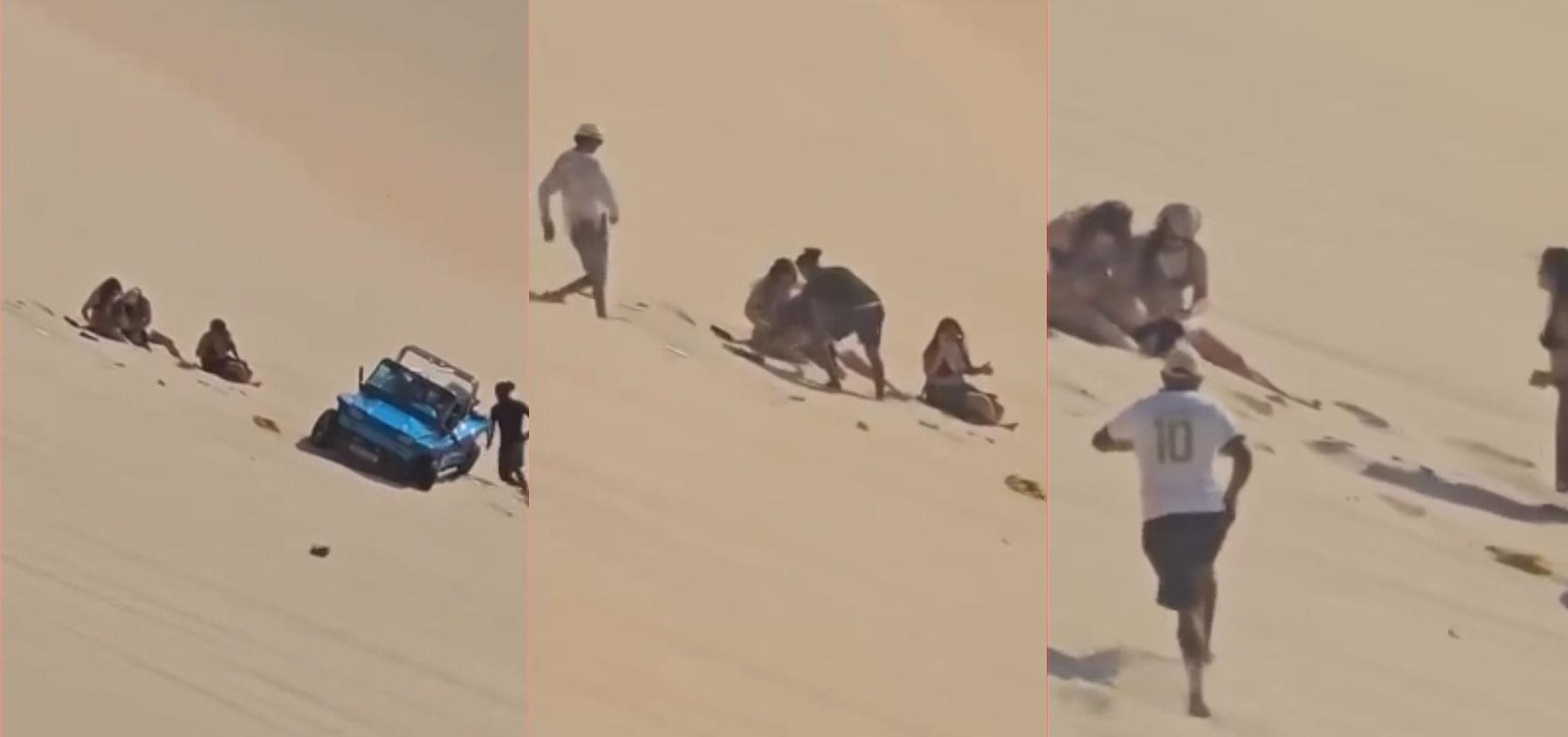 Na última sexta-feira (19), três turistas sofreram um acidente enquanto passeavam de buggy nas dunas da praia de Canoa Quebrada, em Aracati, no Ceará. O veículo tombou durante o passeio e o condutor, que circulava irregularmente na área, fugiu do local após o ocorrido.