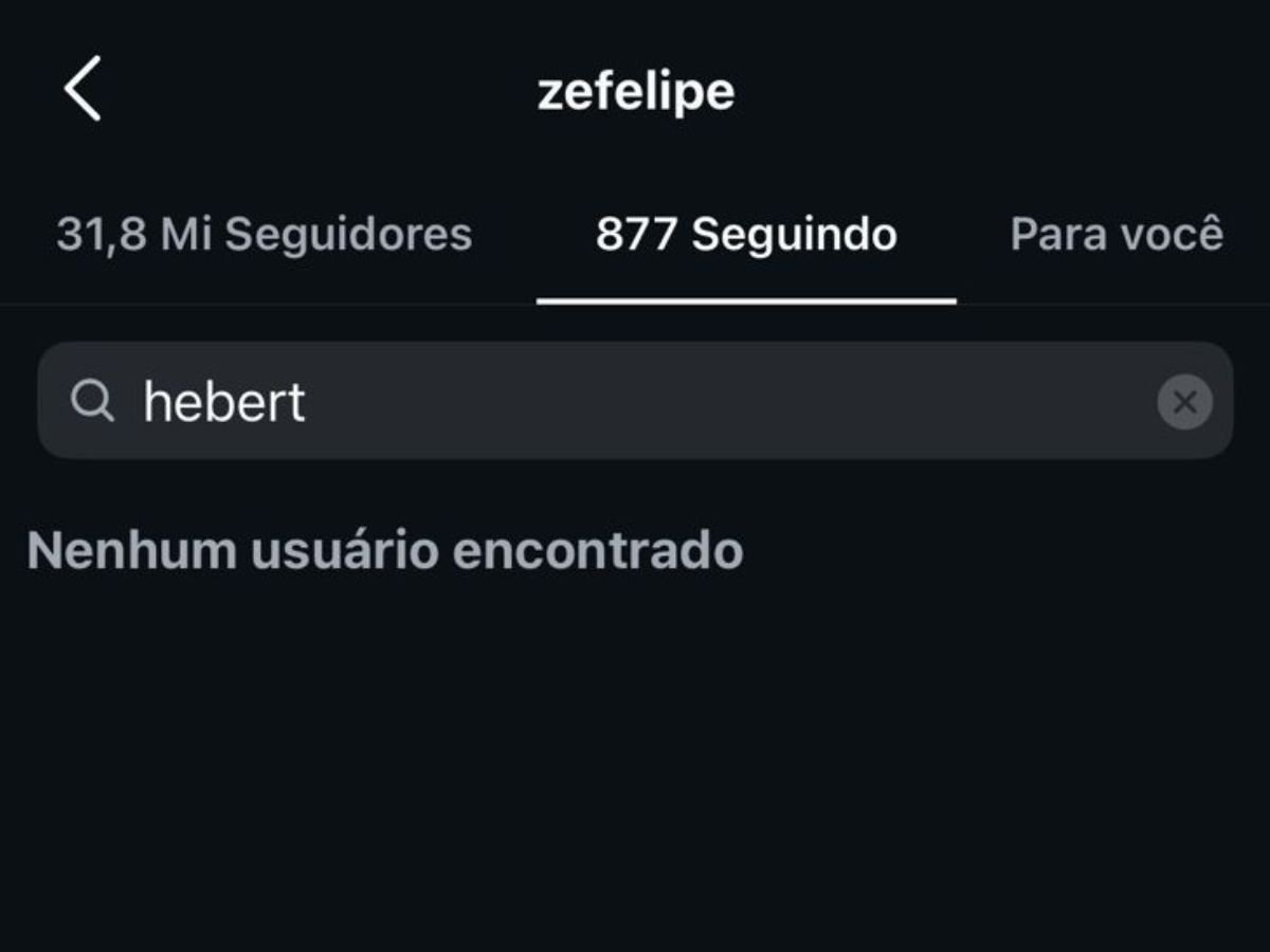 Veja as fotosAbrir em tela cheia Zé Felipe deixa de seguir HebertReprodução / Instagram Hebert Gomes continua seguindo Zé FelipeReprodução / Instagram Virginia Fonseca e Zé FelipeReprodução / Instagram: @virginia e @zefelipe Hebert Gomes – Foto: Reprodução/Instagram Hebert Gomes morou com Virginia por 2 anosFoto/Instagram