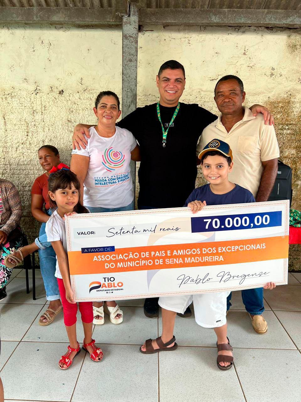 A manhã desta sexta-feira (19) foi de celebração e reconhecimento em Sena Madureira. O deputado estadual Tio Pablo (PSD) entregou uma emenda parlamentar no valor de R$ 70 mil à Associação de Pais e Amigos dos Excepcionais (APAE), reforçando seu compromisso com a inclusão social e o fortalecimento de instituições que transformam vidas.
