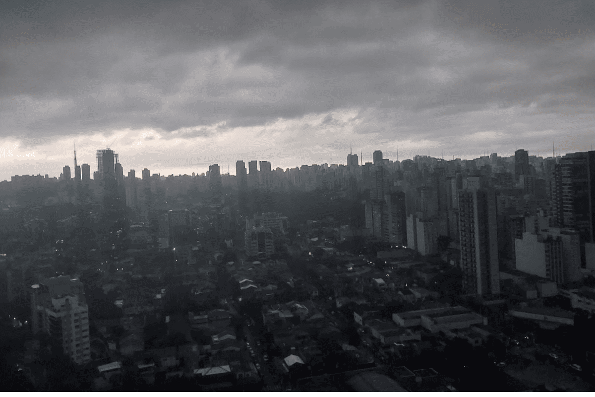 O dia virou noite na cidade de São Paulo minutos após a Defesa Civil ter emitido um alerta para temporais com rajadas de vento nas próximas horas desta segunda-feira (22/9) na capital e na região metropolitana. Segundo o aviso, há risco de queda de árvores e destelhamento.