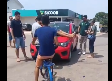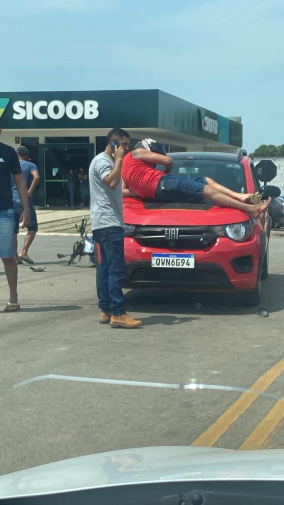 A colisão aconteceu no cruzamento da Rua Quintino Bocaiuva com a Avenida Brasil, ponto de intenso movimento no município. Imagens enviadas à redação mostram o motociclista machucado ainda em cima do automóvel logo após o acidente.