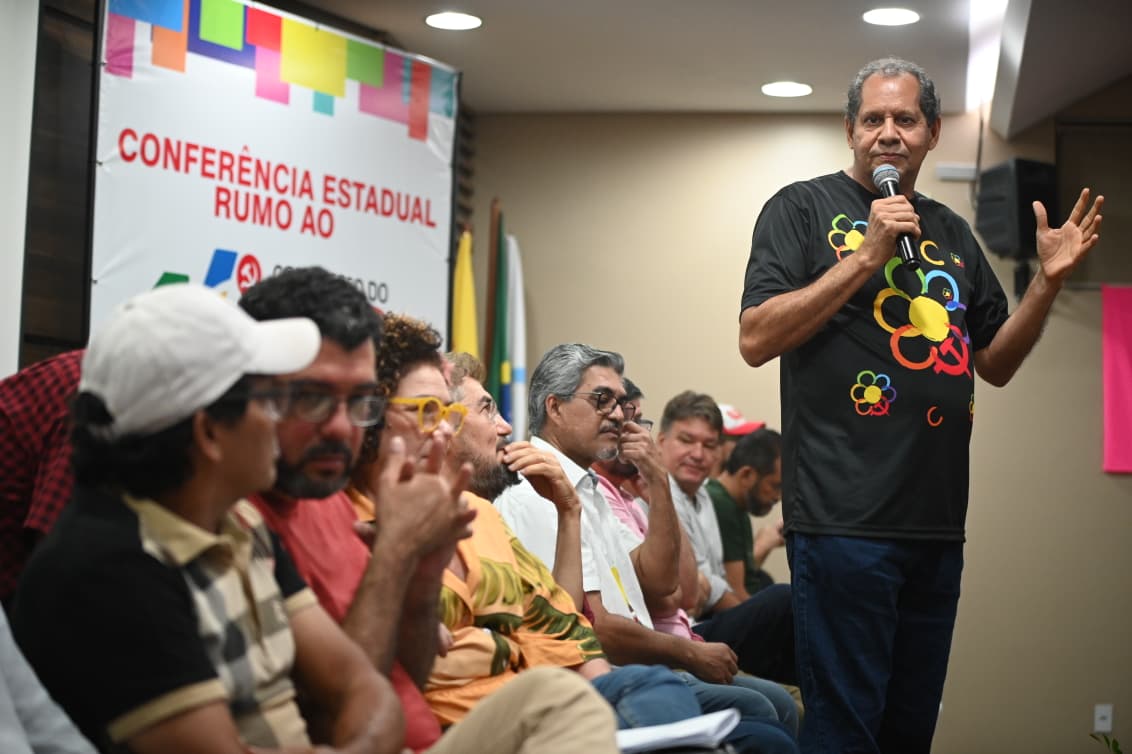 Logo após a fala de Farias, Adalberto Monteiro, que representa a direção do PCdoB nacional, trouxe “um abraço afetuoso” da presidente nacional do PCdoB, Luciana Santos, que também é ministra da Ciência, Tecnologia e Inovação.