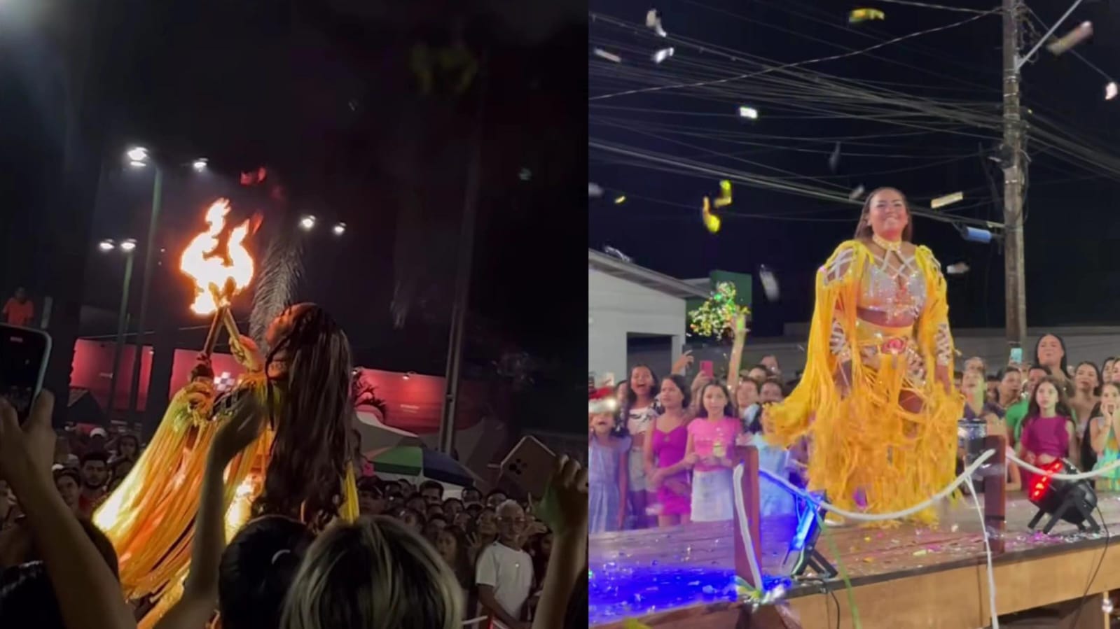 Com sua simpatia e carisma, Vandressa conquistou a plateia ao apresentar uma performance única de piroflagia, arte que envolve a manipulação do fogo. Durante o número, ela cuspiu fogo, realizou diversas danças e até incorporou um violão em sua apresentação, desfilando pelo palco com criatividade e ousadia.